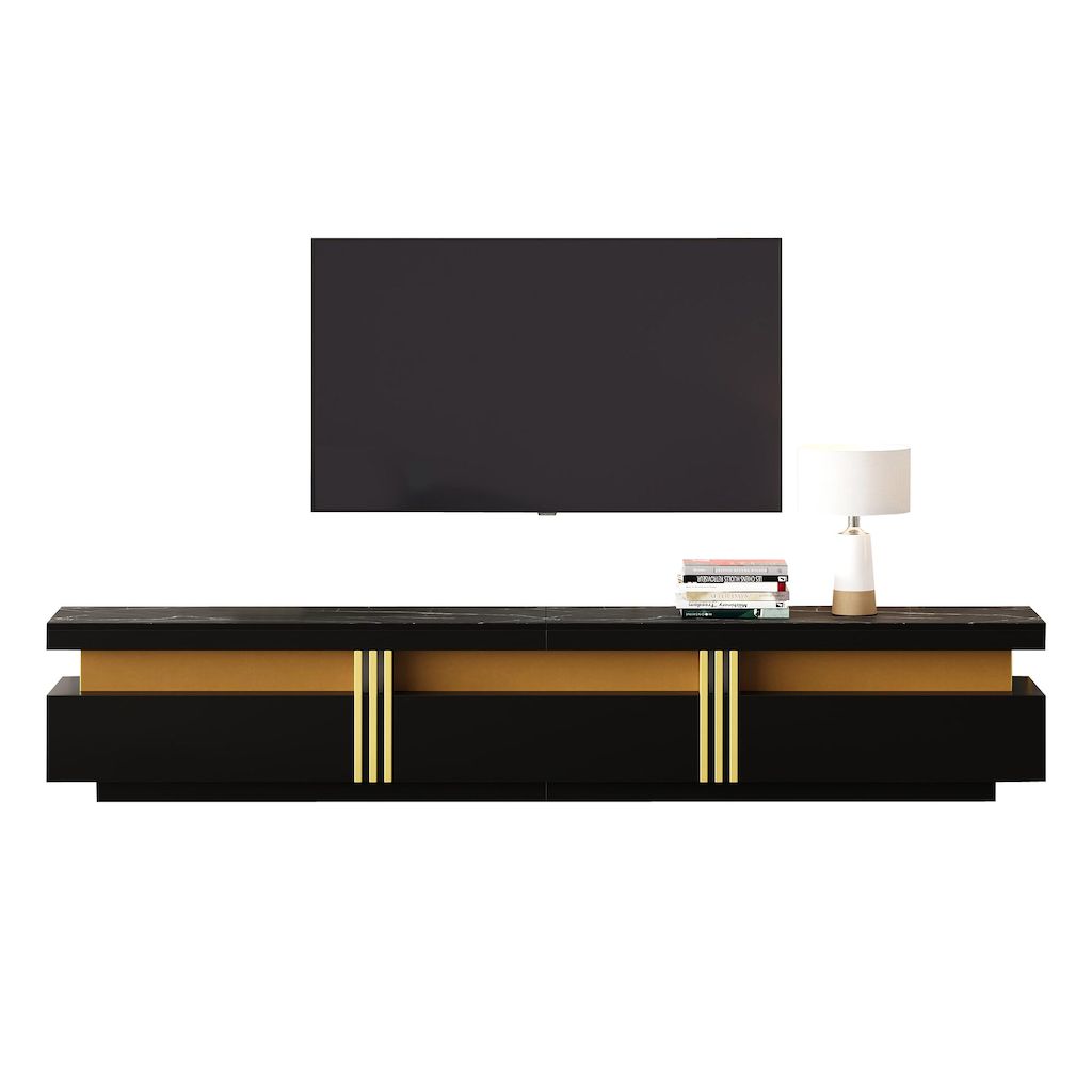 ÉLÉGANT ET FONCTIONNEL : Un meuble TV qui allie design moderne et haute fonctionnalité.