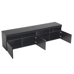 Style moderne, panneaux brillants et stratifié de verre : élégant et raffiné. Apportez une touche d'originalité à votre salon.Fabriqué en MDF de haute qualité, ce meuble est robuste et durable. Chaque panneau supporte un poids de 30 kg.Ses trois portes et ses trois étagères offrent un espace de rang