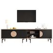 Fonctionnalité intégrée : Ce meuble TV allie espace de rangement (plusieurs compartiments), esthétique (design aux couleurs contrastées) et stabilité (TV et objets de décoration), répondant ainsi à de multiples besoins dans votre salon et améliorant votre confort.