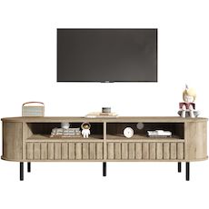 Capacité de charge fiable : Les 5 pieds de support, uniformément espacés, sont fabriqués en Panneau composite de fibres de bois à densité robuste et durable. La charge maximale recommandée est de 25 kg. Ce meuble offre un support stable et facile pour les téléviseurs, les enceintes, les objets de décoration, etc.