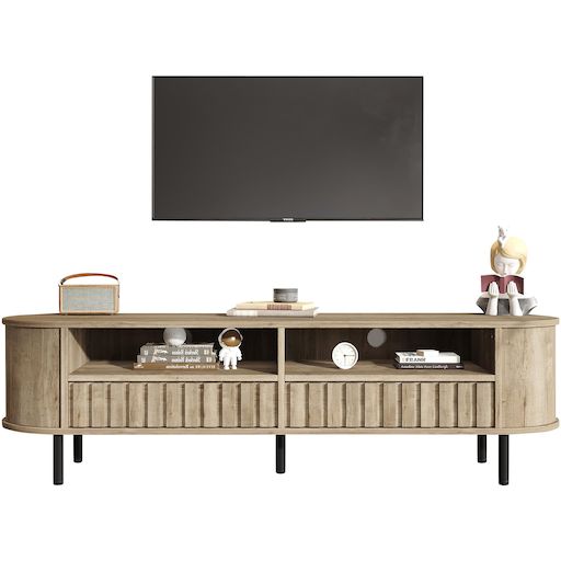 Intégration fonctionnelle : Combinant meuble TV, rangements (tiroirs et étagères ouvertes) et éléments décoratifs, ce meuble TV unique répond à de multiples besoins dans votre salon et constitue un choix pratique pour améliorer votre confort au quotidien.