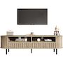 Rangement optimisé : 2 tiroirs + 2 étagères semi-ouvertes + 1 étagère plate. Livres, décodeurs et autres petits objets trouvent chacun leur place, et ce rangement organisé garantit ordre et visibilité dans le salon.