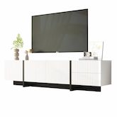 Grand espace de rangement : le meuble TV dispose de 2 tiroirs et de 3 portes, offrant suffisamment d'espace pour ranger soigneusement vos appareils électroniques grand public, vos livres et vos accessoires.Charnières amortissantes : Les portes sont équipées de charnières amortissantes qui garantisse