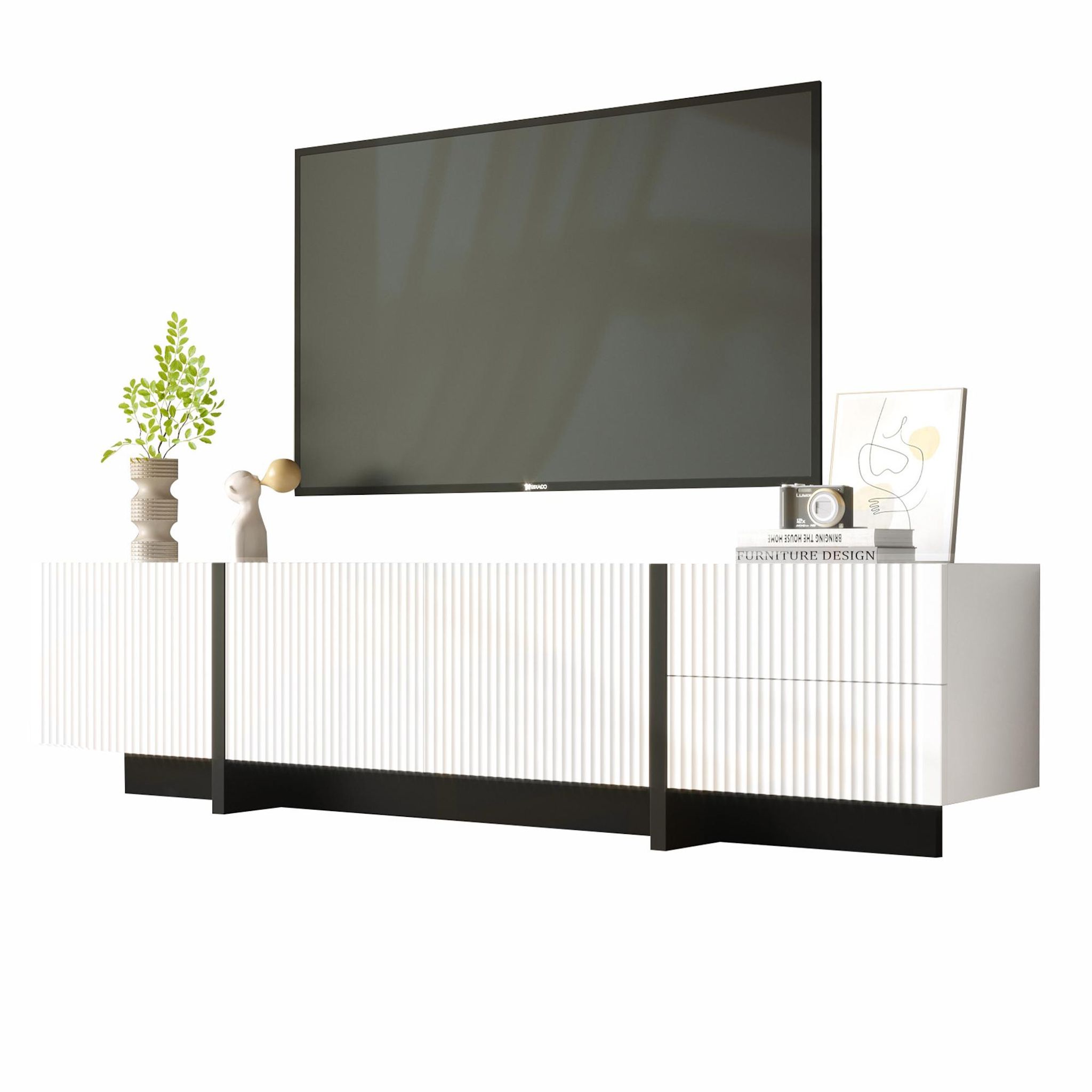 Grand espace de rangement : le meuble TV dispose de 2 tiroirs et de 3 portes, offrant suffisamment d'espace pour ranger soigneusement vos appareils électroniques grand public, vos livres et vos accessoires.