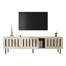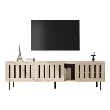 Adaptabilité à différents styles de pièces : Que votre salon soit moderne, scandinave ou de style naturel, ce meuble s'intègre harmonieusement et sert à la fois de meuble TV et d'espace de rangement multifonctionnel pour exposer vos objets.