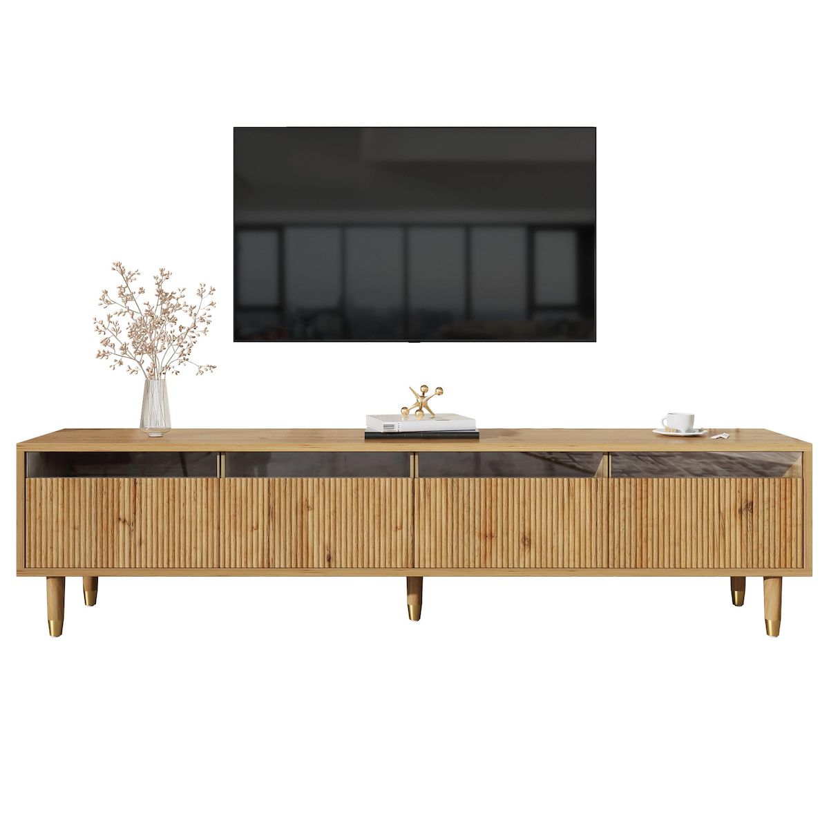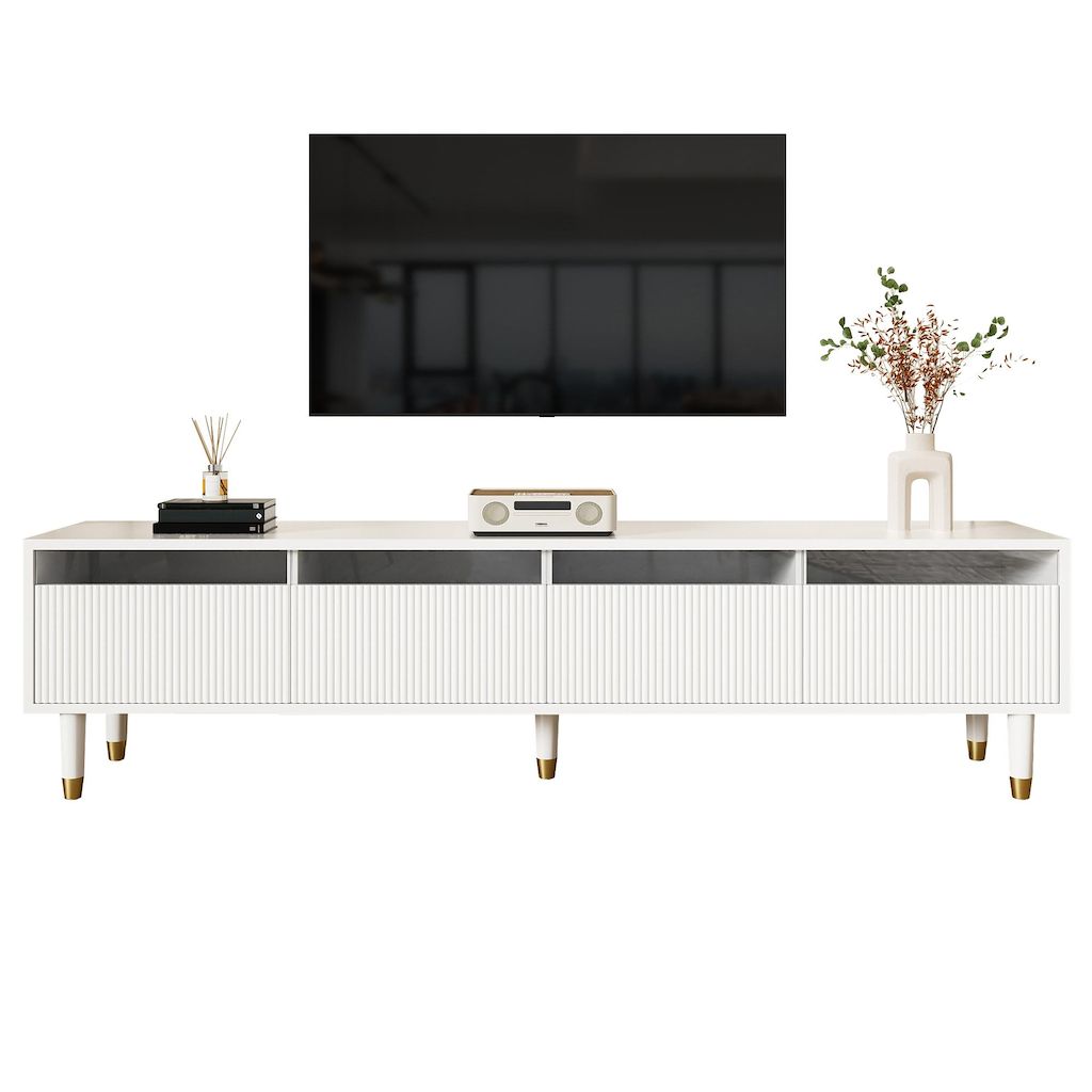 4 tiroirs pratiques – Des tiroirs spacieux et robustes en Panneau composite de fibres de bois à densité et acrylique offrent un rangement élégant pour télécommandes, consoles, DVD et bien plus encore.