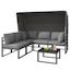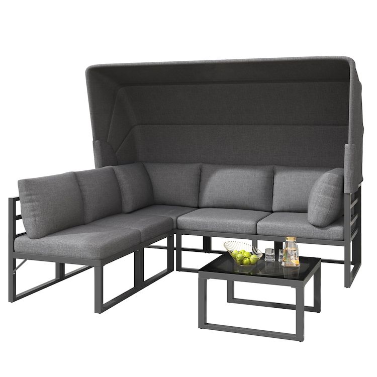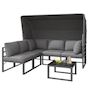 Salon de jardin 5 places en fer avec table auvent, coussins polyester qualité, gris