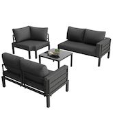Ensemble de mobilier de jardin moderne : Cet ensemble comprend un canapé 4-5 places et une table basse pratique. Il allie esthétique moderne et charme vintage. Votre confort est notre priorité. Le dossier haut ergonomique et l'assise de 10 cm d'épaisseur