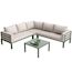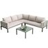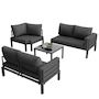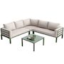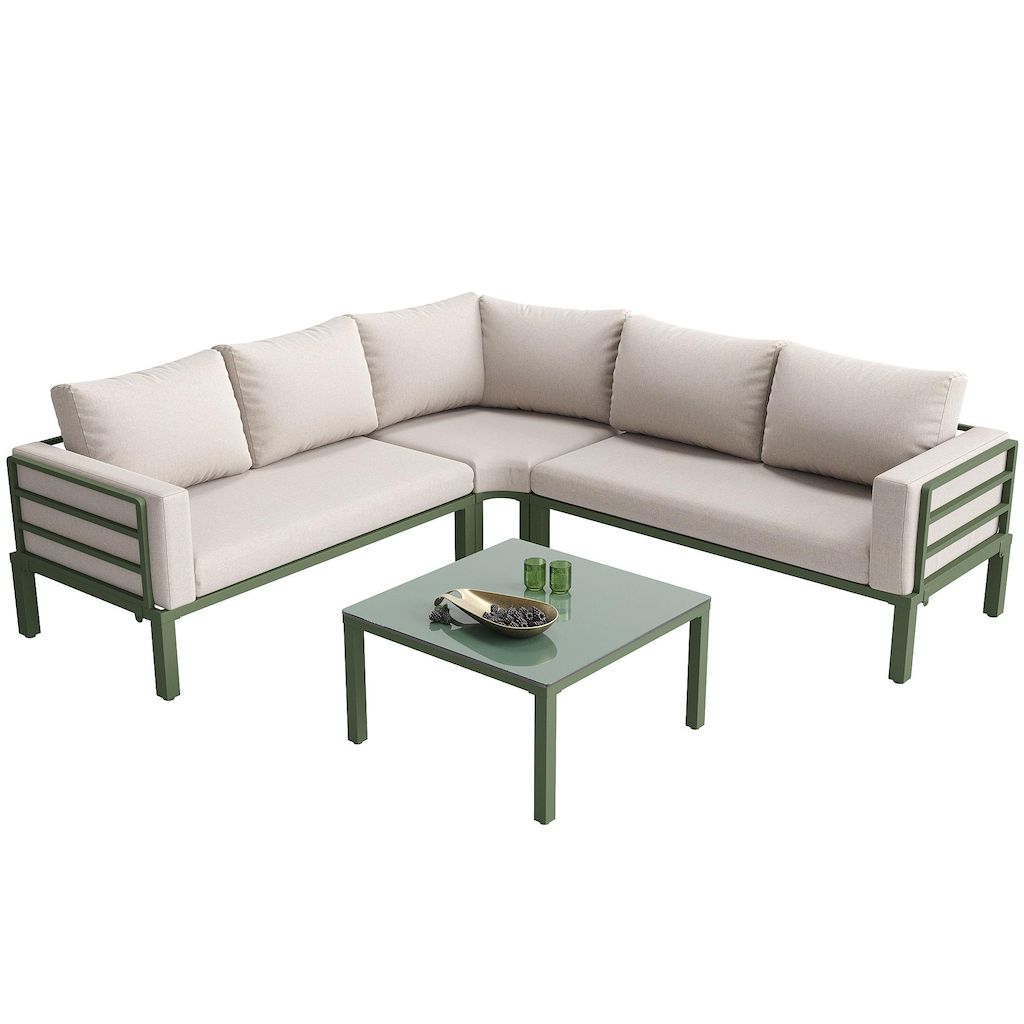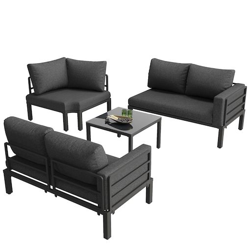 Conception soignée : La table et le canapé d'extérieur sont équipés de pieds réglables, assurant une stabilité parfaite même sur terrain accidenté. Le canapé comprend trois coussins de 10 cm d'épaisseur et six dossiers. Le canapé d'angle incurvé et le