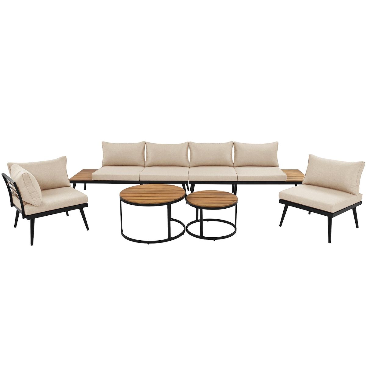 Combinaisons polyvalentes : Nos ensembles de jardin offrent de multiples configurations. Nos canapés deux places sont tous en bois d'acacia massif, idéal pour poser objets et boissons. Nos chaises peuvent être agencées pour former deux canapés trois places,