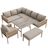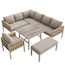Salon de jardin 8 places en Métal avec table verre trempé, pieds réglables, coussins, beige