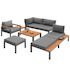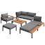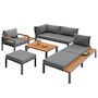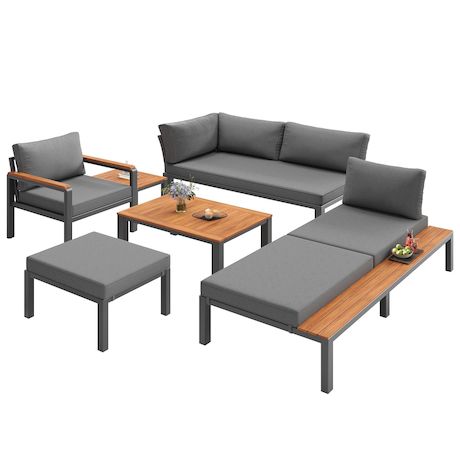 Salon de jardin modulaire pour 5-6 personnes en métal avec coussins et tables en bois, gris