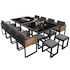 Salon de jardin repas 12 places en métal et bois avec table en verre et 12 sièges, gris