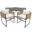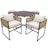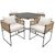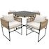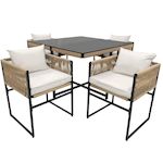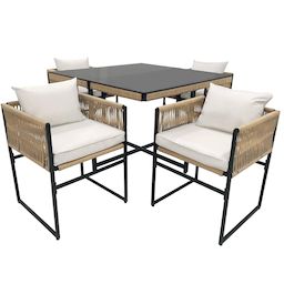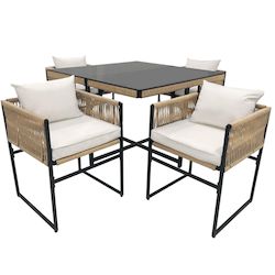 Notre ensemble de mobilier de jardin est conçu pour 4 personnes. Les 4 chaises se rangent entièrement sous la table pour un gain de place optimal, vous offrant ainsi un espace convivial pour profiter pleinement de votre extérieur !