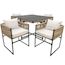 Dimensions généreuses : Des proportions idéales pour l'extérieur - Table : 110 x 110 x 74 cm, Tabouret : 52 x 52 x 68 cm. Le coussin de dossier mesure 34 x 42 cm et le coussin d'assise 50 x 47 x 7 cm. Tous les coussins sont déhoussables et lavables.