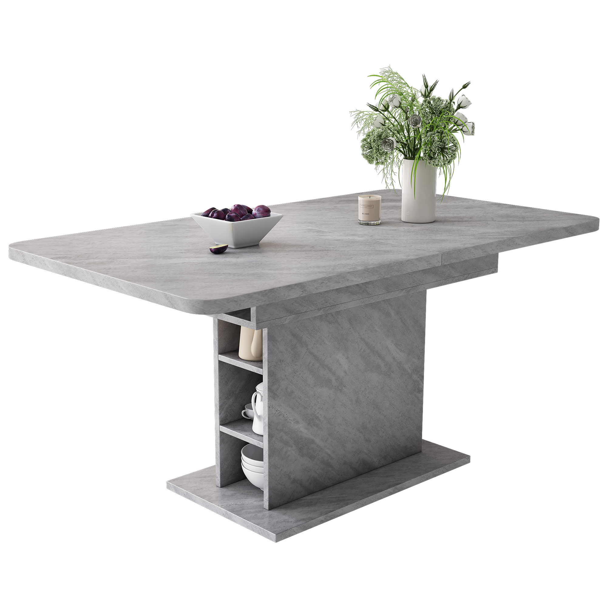 Cette table à manger a une apparence simple et élégante, intégrant intelligemment des éléments de design modernes et altiques, ce qui en fait un choix idéal pour différents styles de maison.la conception télescopique unique peut facilement modifier la longueur et la taille du plateau, créant ainsi p