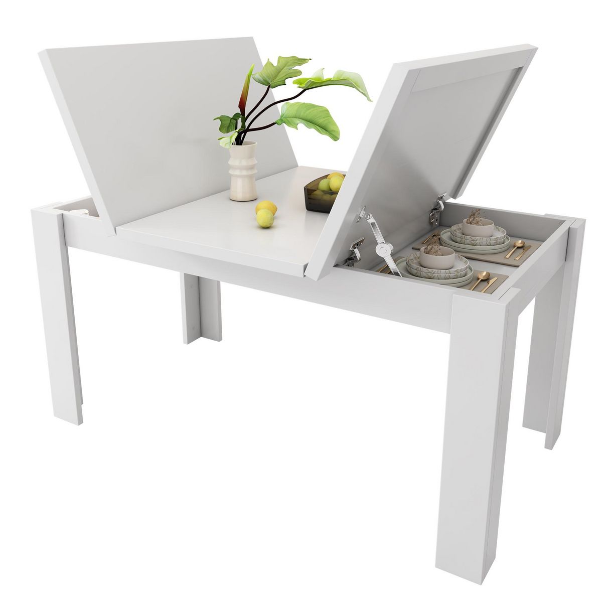 Rangement caché pour une salle à manger bien rangée - Cette table à manger pliante présente une conception de rangement caché innovante, offrant un grand espace de rangement sous le plateau de la table pour les nécessités quotidiennes telles que la vaisselle, les sets de table, les épices, etc. Cela maintient la surface de la table à manger bien rangée, éliminant l'environnement de salle à manger en désordre et améliorant facilement votre qualité de vie.