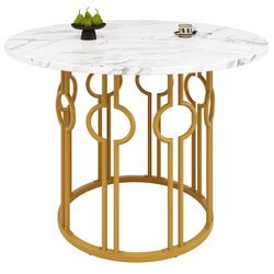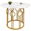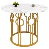 Table à manger ronde fixe blanc+doré - 100x100-100max.cm mdf et métal