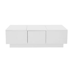 Table Basse Brillante Avec 2 Tiroirs Et 2 Rangements Push-pull Blanc