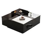 Table Basse Carrée Avec 4 Tiroirs Et 2 Plateaux Coulissants Noir