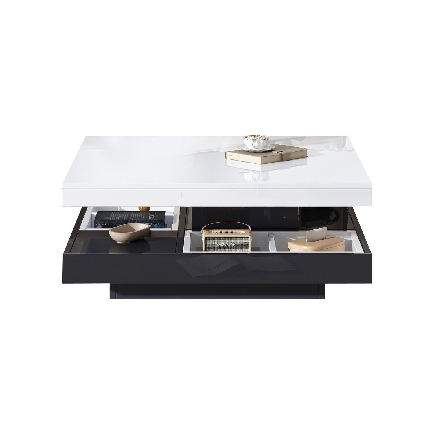 Table Basse Carrée Avec Un Bureau Rotatif à 360° Et Plusieurs Compartiments De Rangement Noir