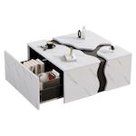 Design unique : Un grand plateau plat et des tiroirs dissimulés offrent un double espace de rangement, permettant de ranger avec soin vos services à thé et vos magazines et de garder votre salon impeccable.