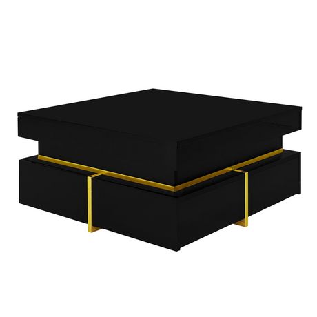 Table Basse Carrée Brillante Avec 2 Tiroirs Noir
