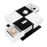 Table basse carrée noir+blanc avec 2 tiroirs - 70x70 cm panneau de particules