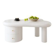Table basse forme atypique blanc avec 2 tiroirs - 64x97 cm mdf