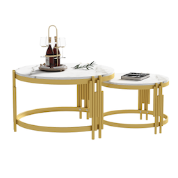 Éléments en métal doré : Le cadre doré, en métal de haute qualité, est robuste et durable et donne aux tables une touche luxueuse qui s'intègre parfaitement au design moderne.