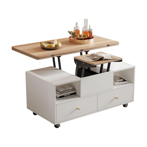 Table basse plateau relevable rectangulaire blanc+naturel - 50x100 cm mdf
