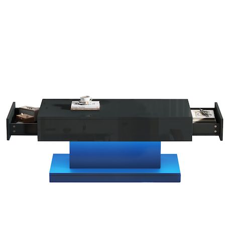Table basse rectangulaire noir avec 2 tiroirs - 50x100 cm led panneau de particules