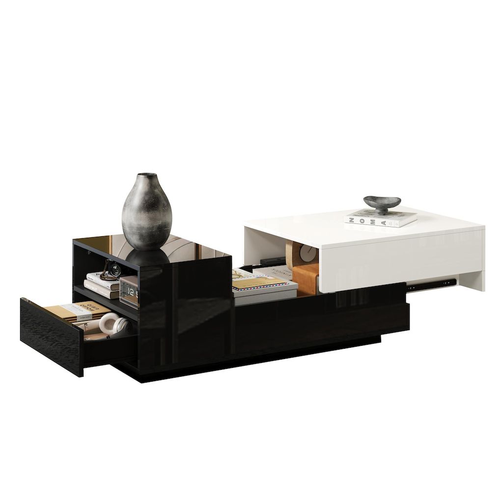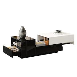 Table basse rectangulaire noir+blanc avec 2 tiroirs - 50x100 cm panneau de particules
