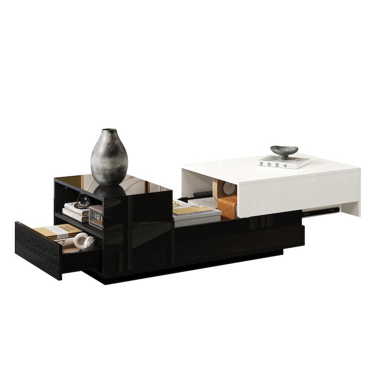 Soin du détail : La surface brillante reflète la lumière et les ombres, ajoutant un effet superposé aux combinaisons noir et blanc. Les tiroirs coulissent en douceur et se ferment silencieusement, et même la quincaillerie est sophistiquée.