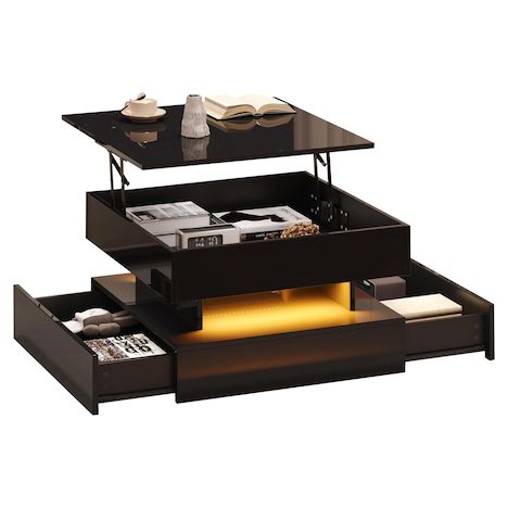 Table basse relevable carrée noir - 65x65 cm led panneau de particules
