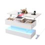 Table basse relevable rectangulaire blanc - 50x100 cm led panneau de particules