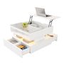 Table basse relevable rectangulaire blanc - 67x70 cm led panneau de particules