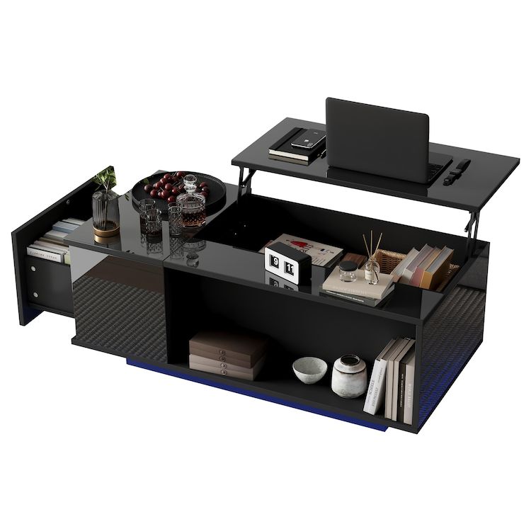 Design ultra-brillant : Le plateau et les bords sont dotés d'une finition ultra-brillante qui confère à la table basse un aspect sophistiqué, lui confère un éclat élégant à la lumière, rehausse sa texture et est facile à nettoyer. Un simple coup d'éponge suffit pour lui redonner un éclat neuf.