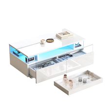 Rangement à trois niveaux : Le niveau inférieur comprend deux tiroirs (surface acrylique transparente), une étagère centrale et une table de rangement supérieure. Les tiroirs servent à ranger les petits objets, le plateau pour les tasses à café fréquemment utilisées, et le niveau supérieur est dédié à la décoration. Un rangement organisé permet de garder le salon bien rangé.