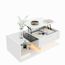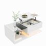 Espace de rangement combiné : La table dispose d'un espace de rangement ouvert et dissimulé sous le plateau relevable, permettant de ranger soigneusement les objets du salon.