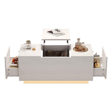 Pratique : De sa fonction de levage pratique, de son rangement pratique dans le tiroir à sa bande lumineuse LED tendance, cette table basse présente de nombreux avantages, ce qui en fait un choix idéal pour les intérieurs modernes.