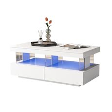 Table basse moderne et brillante : Cette élégante table basse est fabriquée avec une structure en panneaux de particules robustes, ce qui la rend durable et robuste.