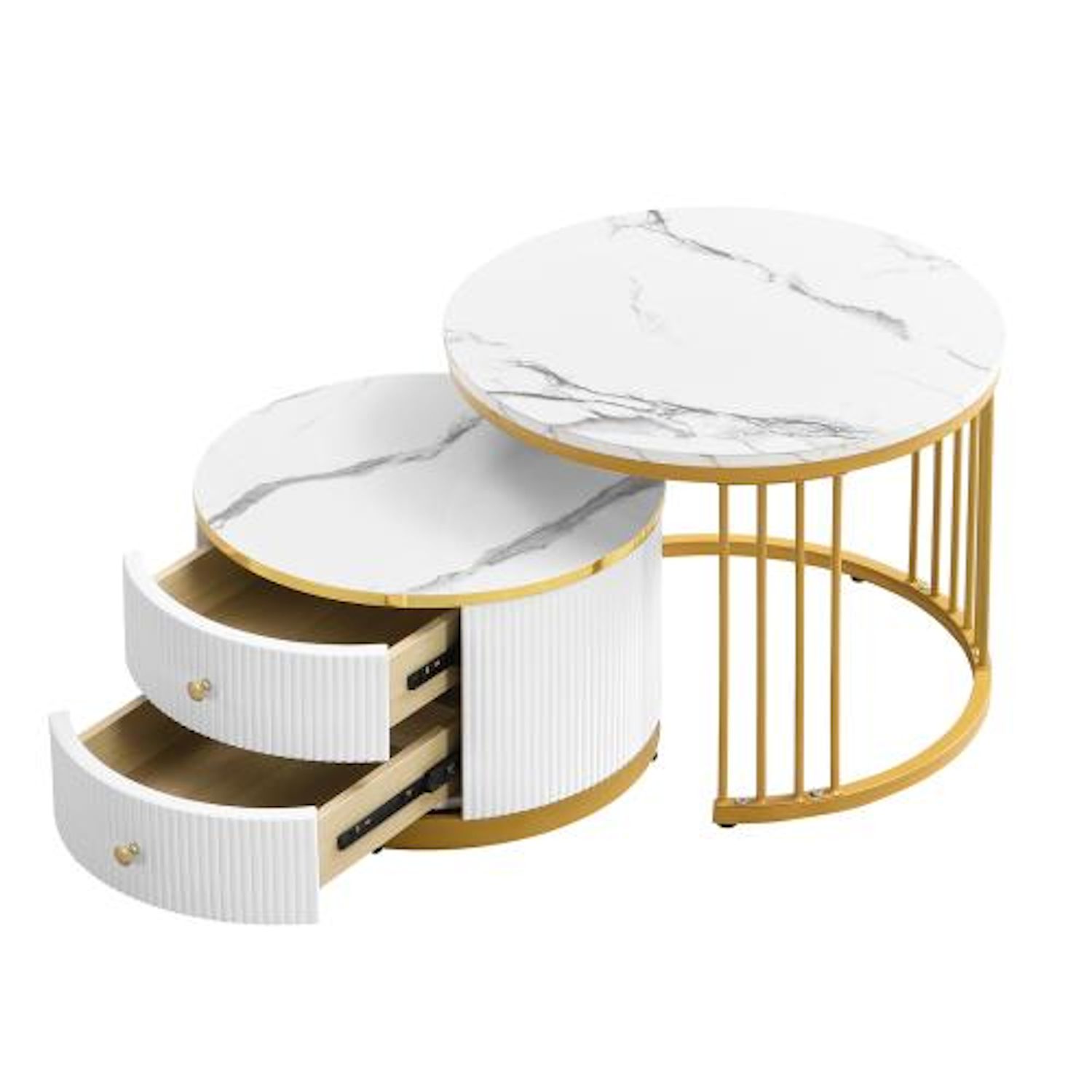 Ensemble 2 pièces : Deux tables basses rondes de différentes tailles pour des utilisations polyvalentes.