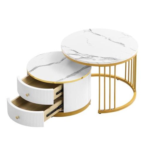 Aspect marbre brillant : les deux plateaux de table sont recouverts d'un aspect marbre élégant et brillant.