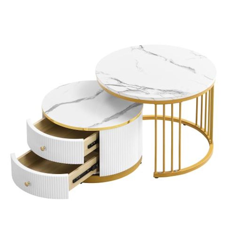 Espace de rangement supplémentaire : la plus petite table dispose de deux tiroirs, idéal pour ranger de petits objets.