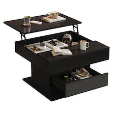 Fonction réglable en hauteur : Le plateau peut être réglé en hauteur, transformant ainsi facilement la table en un espace de travail dans le salon ou en une table à manger. Un espace de rangement dissimulé répond facilement à vos besoins quotidiens.