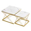 Le plateau de la table basse est constitué d'un motif en marbre brillant et non d'un plateau en pierre de marbre.