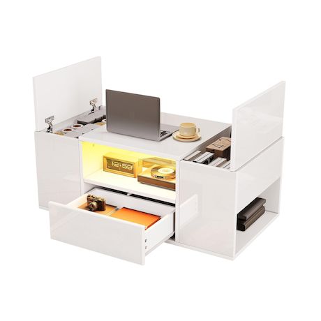 Un style polyvalent qui s'intègre à tous les intérieurs : sa finition brillante s'harmonise parfaitement avec un luxe discret et une décoration intérieure moderne. Placé dans le salon, il fait office à la fois de table basse pratique avec rangement et d'élément convivial pour recevoir, alliant ainsi esthétique et fonctionnalité.