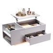 Rangement à tiroirs : Un tiroir est doté de séparateurs internes pour ranger de petits objets tels que des télécommandes et des écouteurs. Fermé, il s'intègre parfaitement au meuble, permettant de garder la table basse propre et bien rangée sans nuire à la beauté de la pièce.