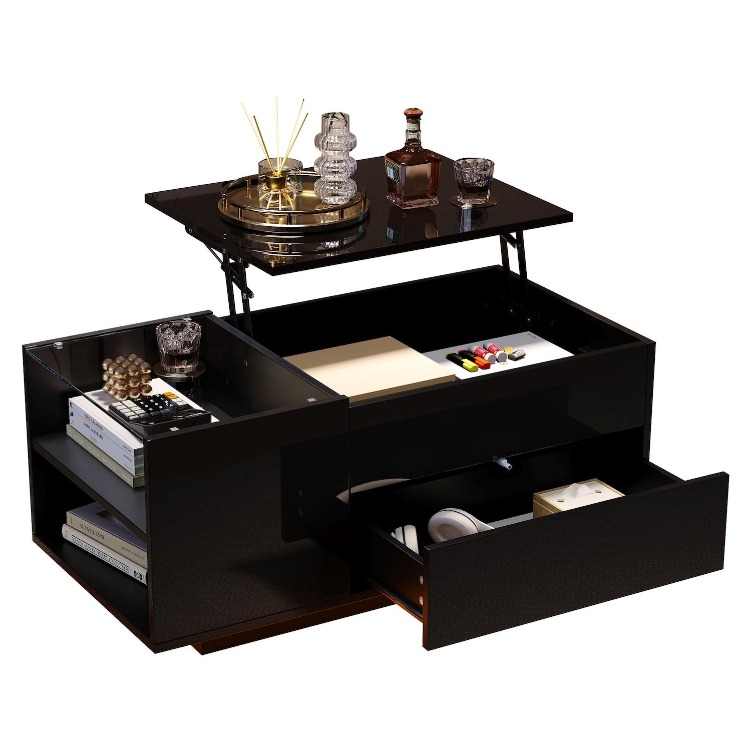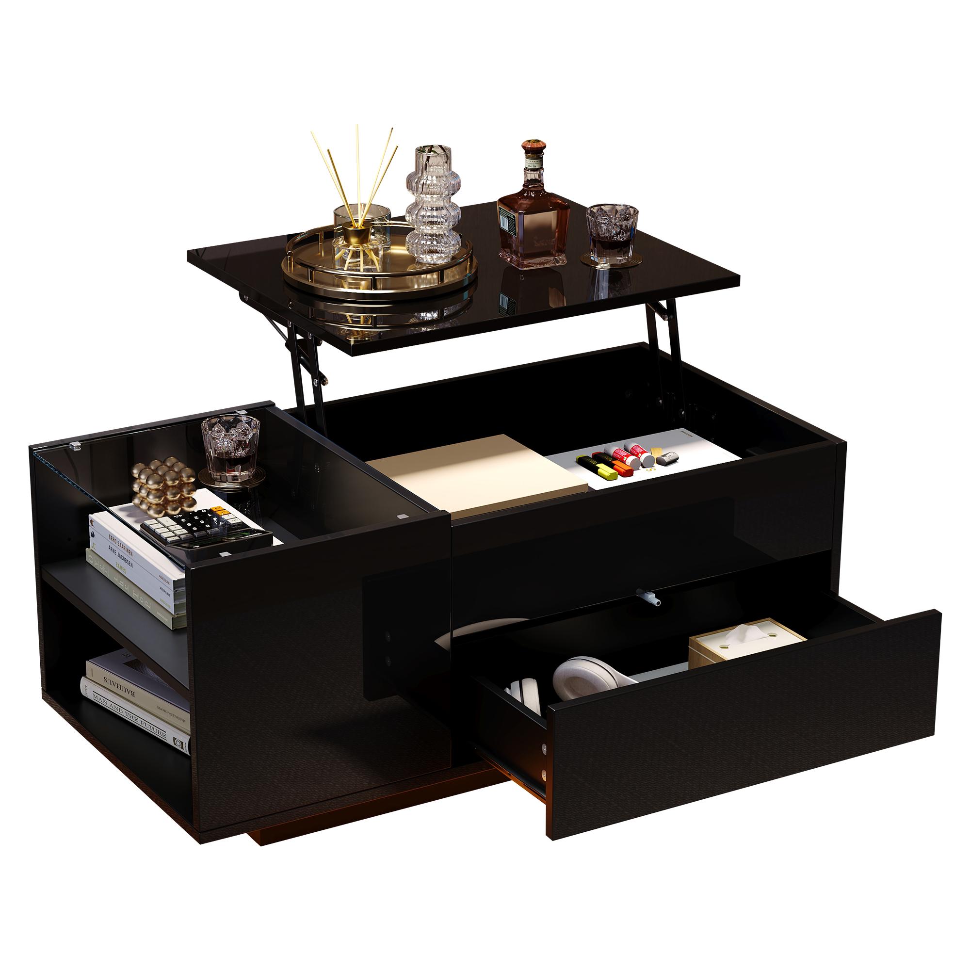 Couverture complète de l'espace : Du thé quotidien au visionnage de séries, en passant par le télétravail et les réunions entre amis, la table basse, avec son plateau relevable, ses fonctions de recharge, de rangement, d'éclairage d'ambiance et autres, répond aux besoins variés du salon, améliorant ainsi l'efficacité et la qualité de vie.